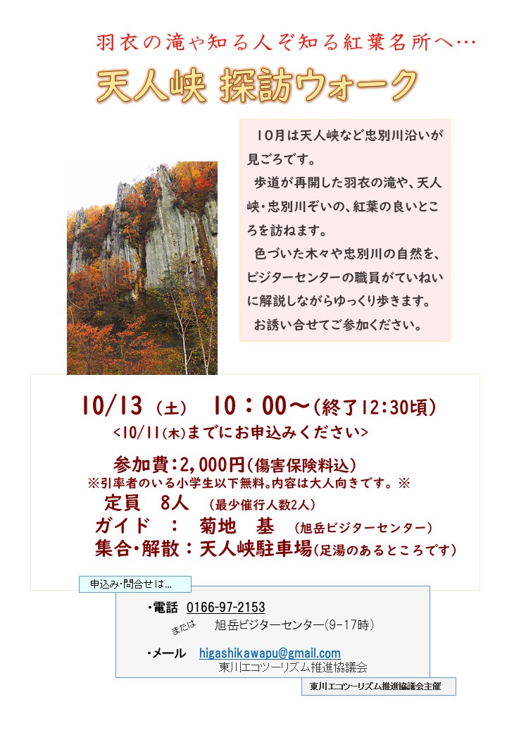 天人峡 探訪ウォーク 10月13日(土) 参加者募集中