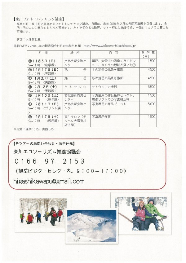 平成29年度東川エコツアー 冬スケジュール(11月~’18年3月)